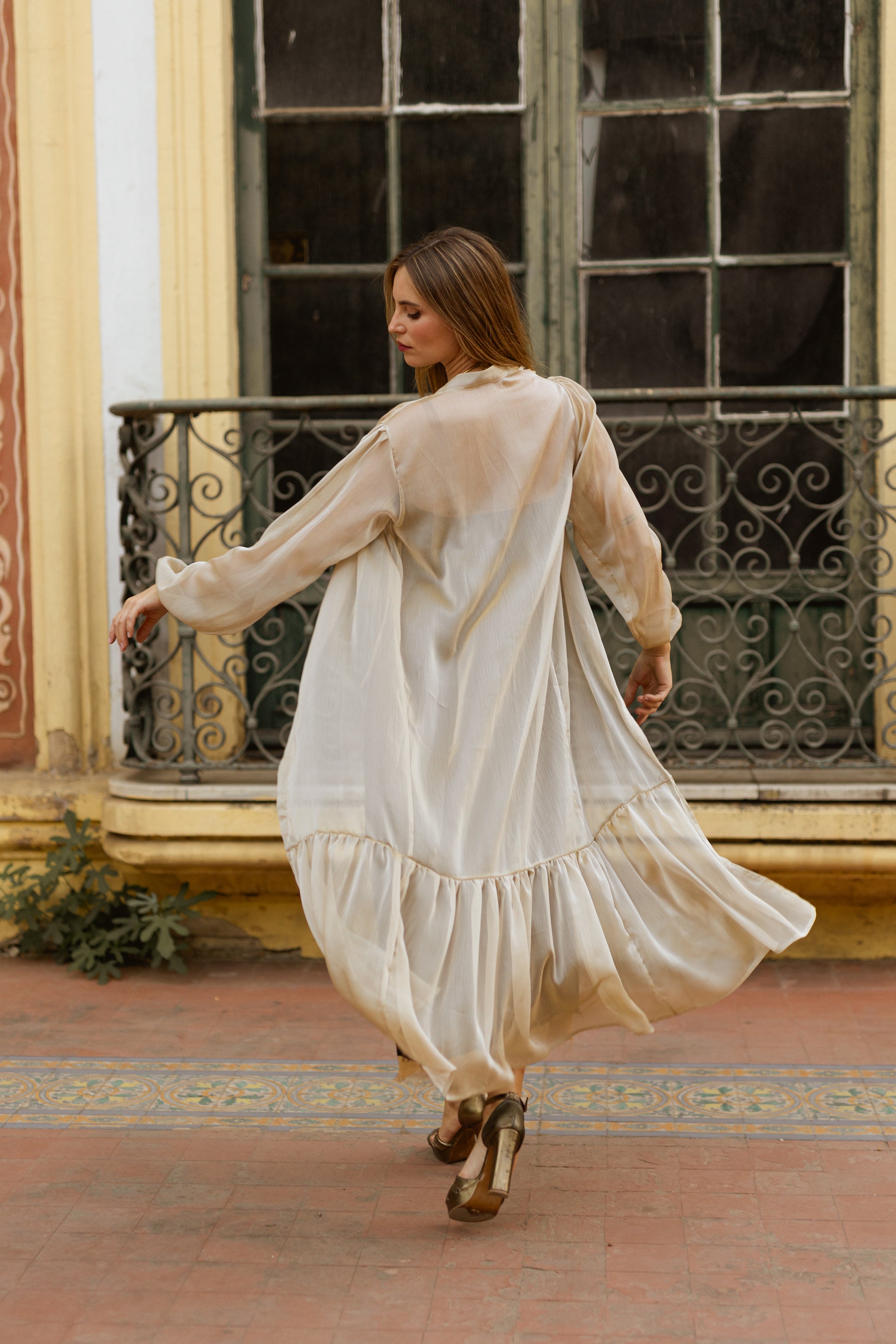 Es una prenda perfecta para eventos u ocasiones especiales, combinando elegancia y frescura en un solo diseño.
